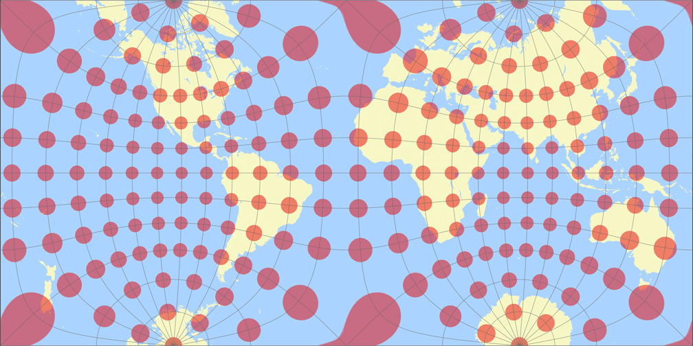 10. Comparison: Tissot Indicatrix, 15° – scaled to same width