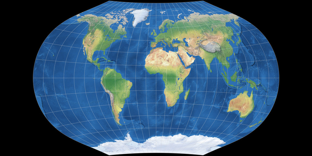 At the center – roughly between 45° N/S and 75° E/W – both maps are nearly identical!