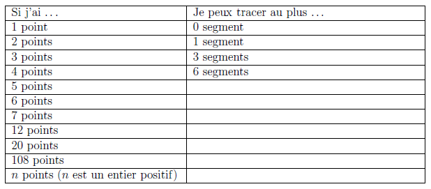Étant donnés quelques points placés sur une feuille, donne une méthode pour savoir combien on peut tracer de segments différents joignant deux quelconques de ces points.
