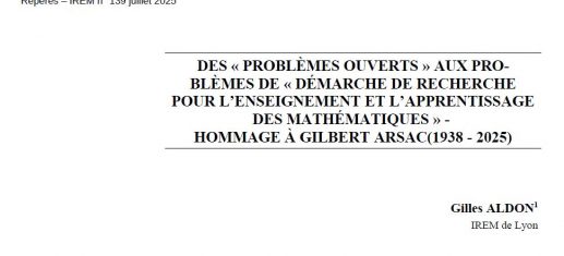 Publications scientifiques 2025 – Les problèmes ouverts du Rallye Mathématique de l’Académie de Lyon de 2021 à 20252025 – Des «Problèmes ouverts» au problèmes de « démarche de recherche pour l’enseignement et l’apprentissage des mathématiques » – Hommage à Gilbert Arsac (1938 – 2025)2025 – Développement professionnel des enseignants dans un Lieu d’éducation Associé2024 – Comment construire une partie de ses apprentissages à partir de problèmes de recherche au cycle 3 ?2023 – Repère IREM – Un dispositif d’accompagnement fondé sur la recherche de problèmes2022 – Fonder son enseignement sur des problèmes de recherche : quels impacts sur les élèves ?2022 – Des dispositifs de recherches de problèmes en cycle 32021 – Dans quelle mesure est-il important de résoudre et de faire résoudre les problèmes ?2020 – Placer l’étude de problèmes au cœur de l’enseignement