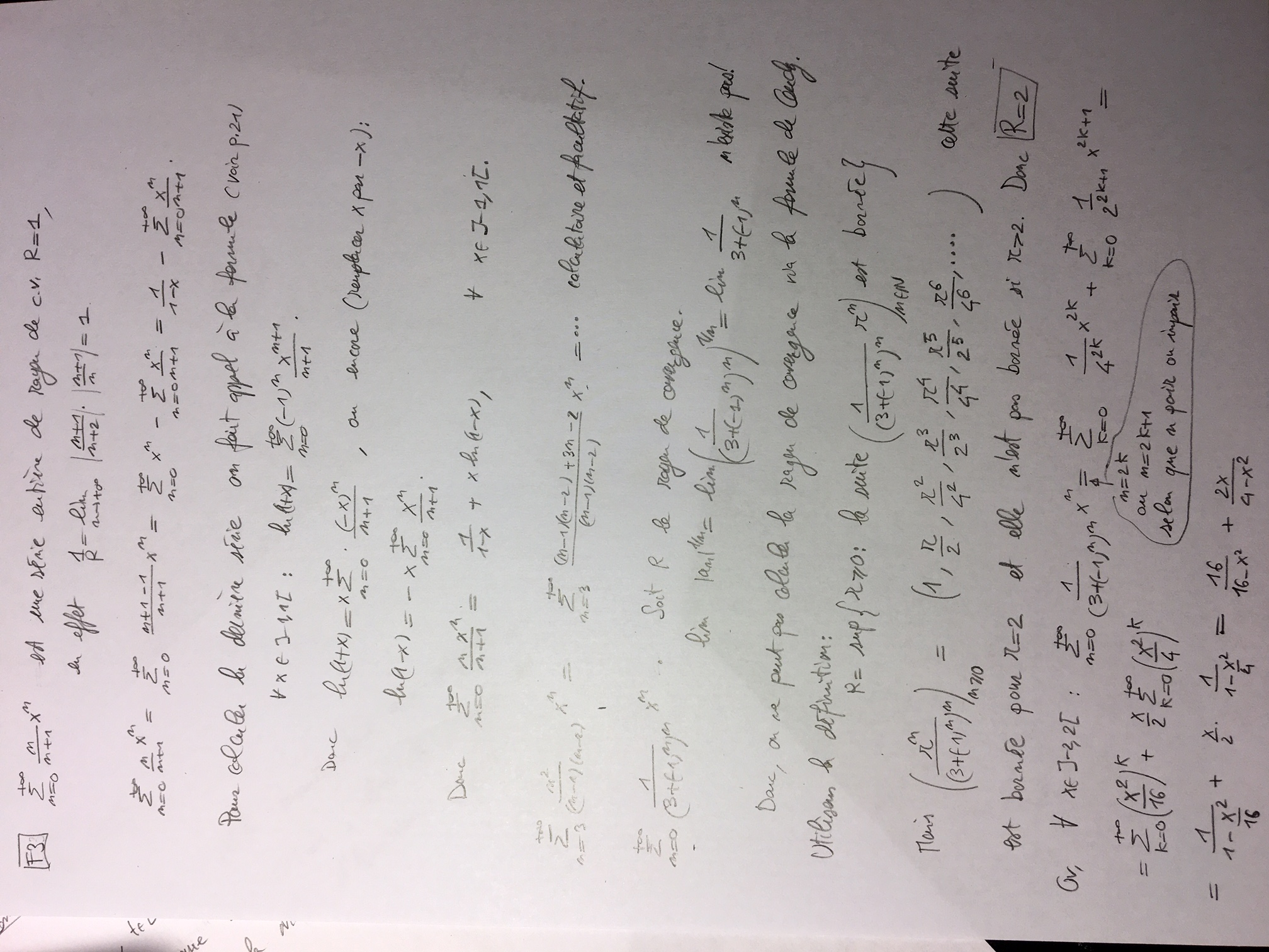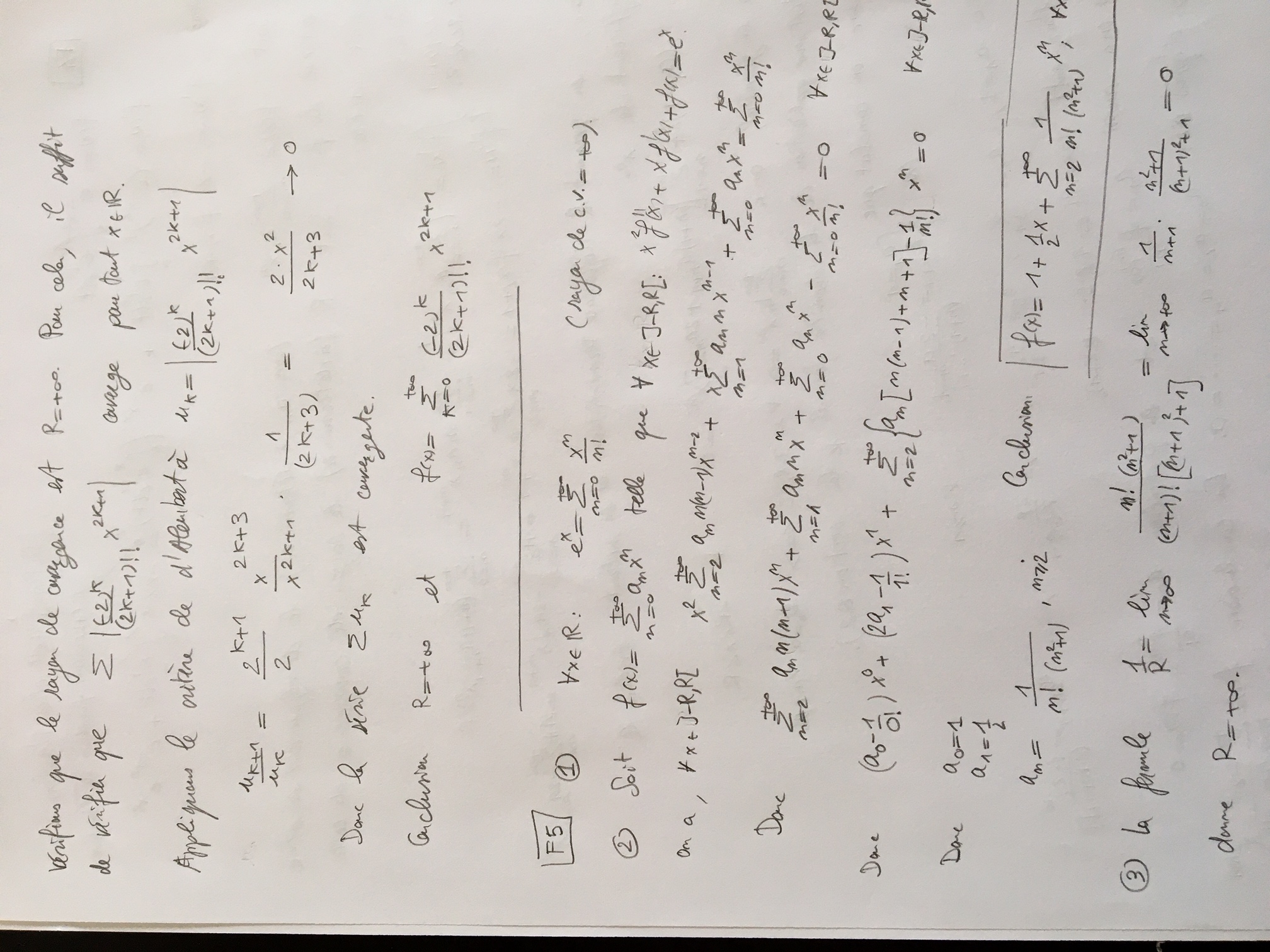 Nous étions allés au delà de l'énoncé et nous avions écrit la fonction exponentielle et la fonction logarithme comme la somme d'une série de fonctions bien précises. Vous avez là déjà deux exemples de séries entières.