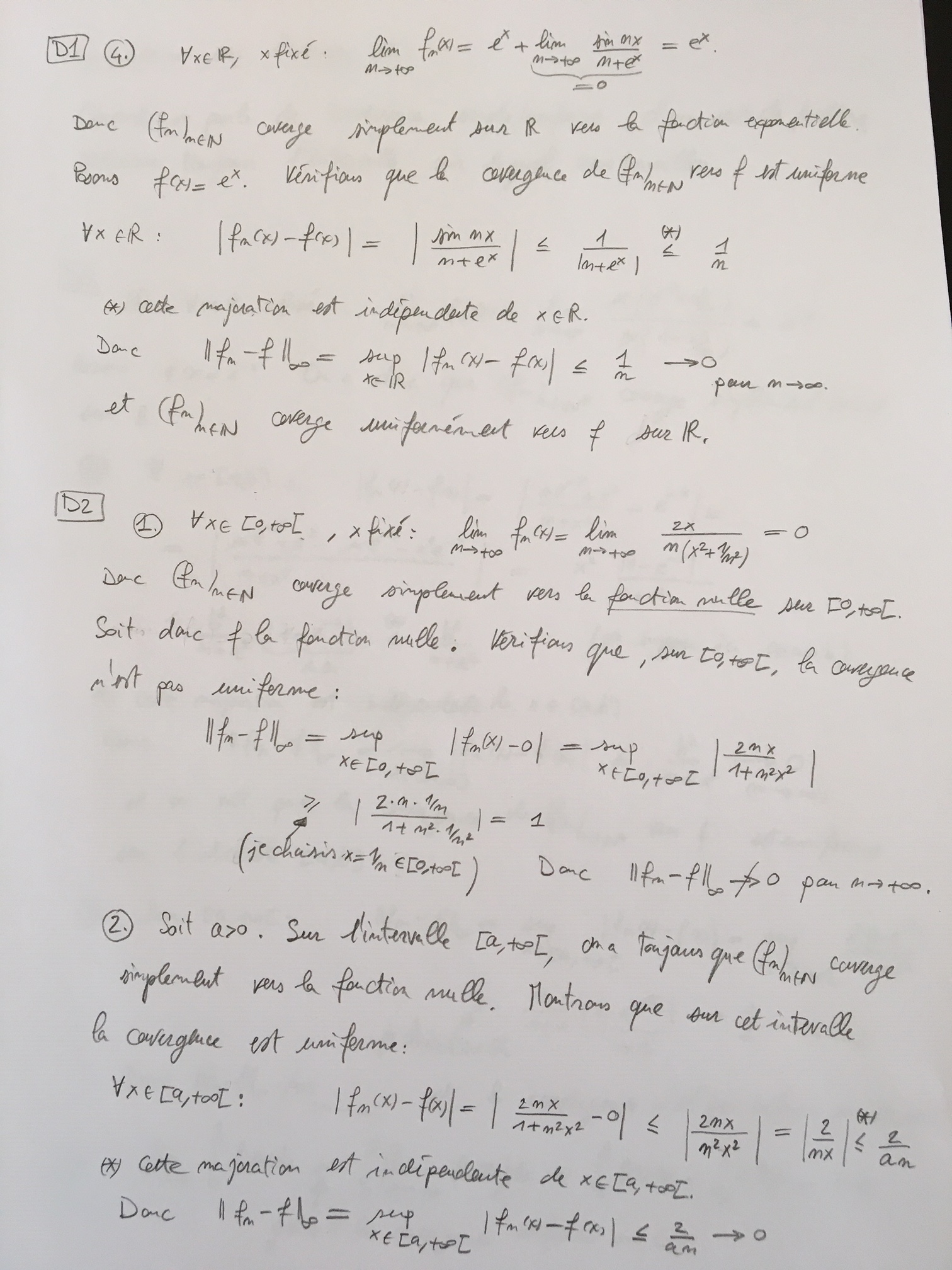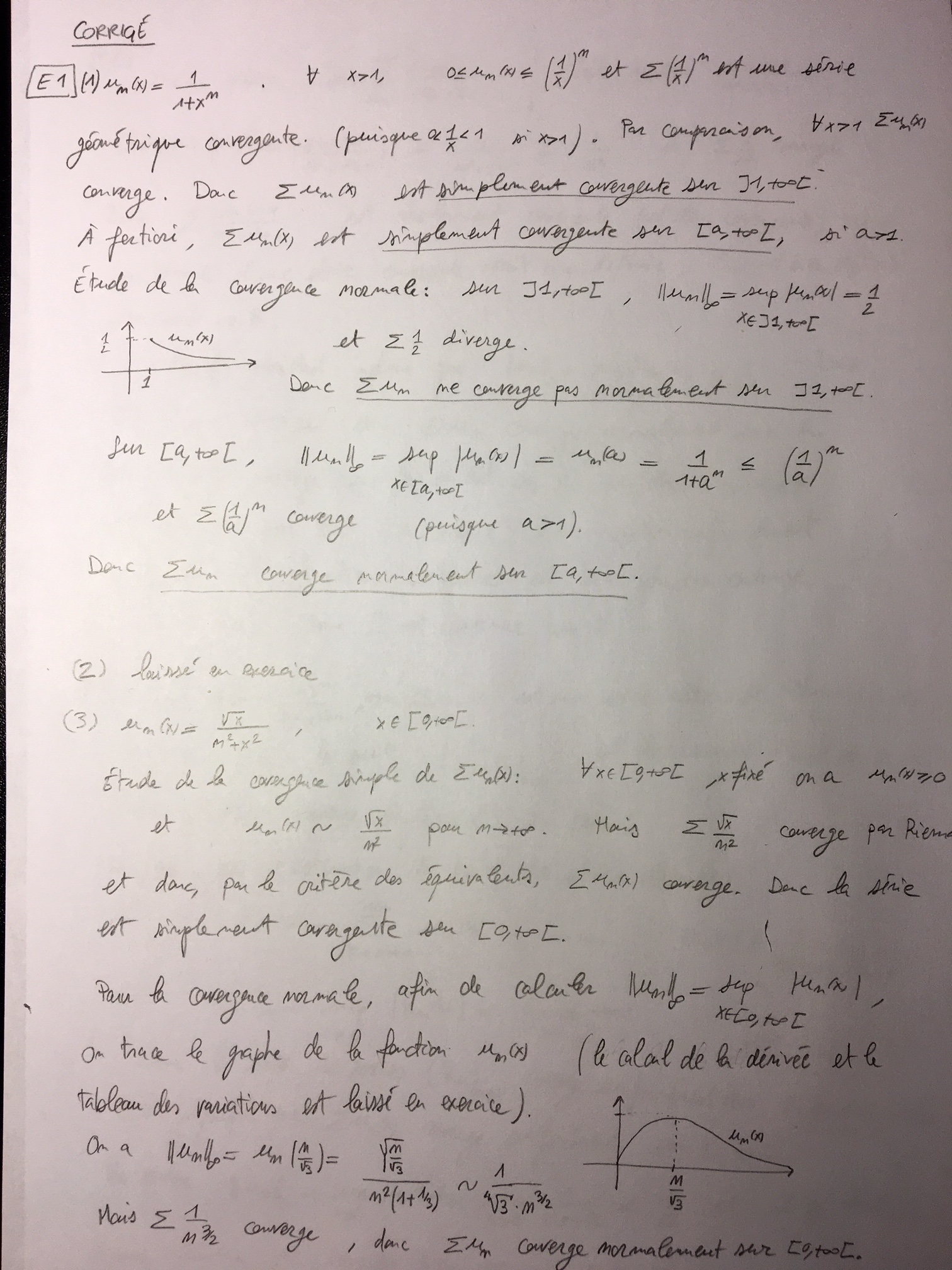 Séries de fonctions : étudier la correction de l'exercice 1 et de l'exercice 5 de