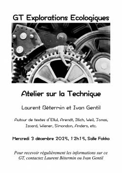 - Le mercredi 3 décembre 2025, 12h15-13h45, salle Fokko du Cloux : “ Atelier sur les outils et la technique ”, organisé par Laurent Bétermin et Ivan Gentil.